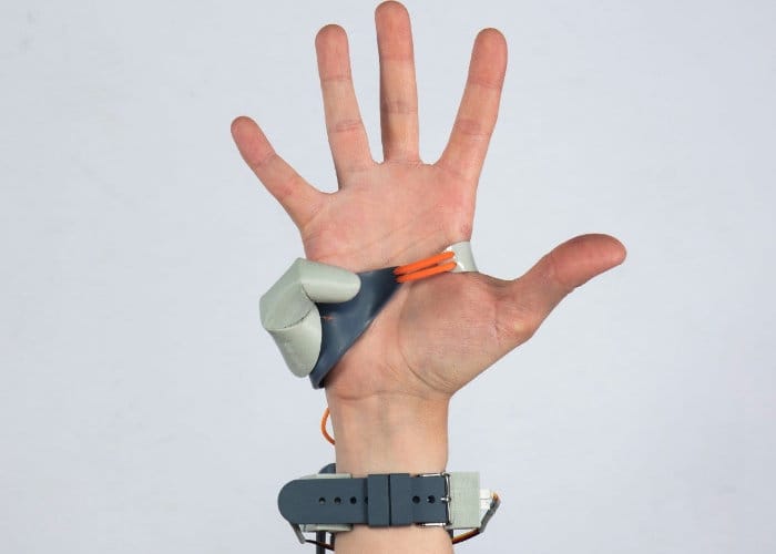 New Zealand designer Dani Clode based in London has created a new prosthetic thumb which has not been designed to replace someone’s missing thumb, but to add an extra digit to your existing five-digit hand, providing a mirror image of your existing thumb. Watch the video below to learn more about the Third Thumb prosthetic which has been created to change the way people think about prosthetics, extending a wearer’s ability, rather than just being considered of as a replacement part for a lost finger.